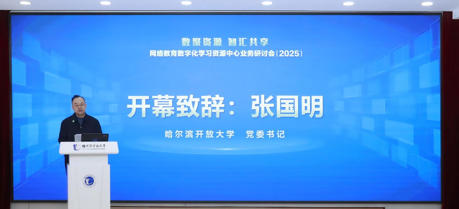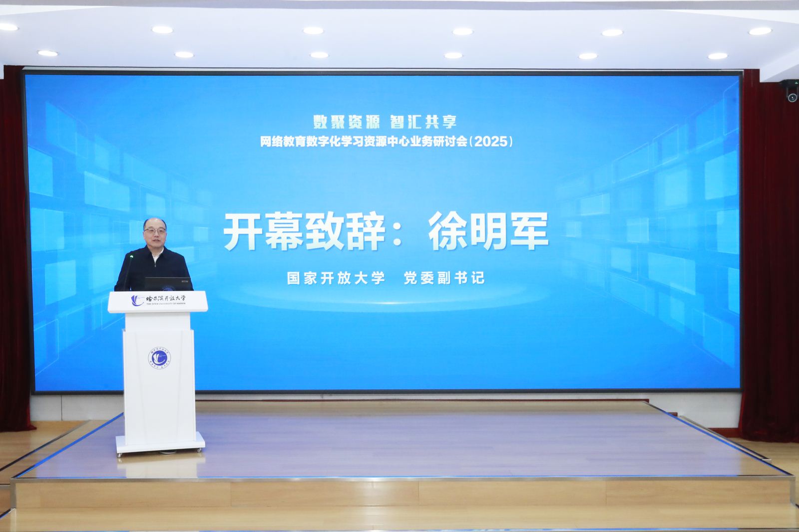1月9日,由哈尔滨开放大学承办的第十六届网络教育数字化学习资源中心工作研讨会顺利召开。本次会议由网络教育数字化学习资源中心、国家开放大学数字化学习资源中心、国开泛在(北京)教育科技有限公司主办,来自全国19个省(市)21所开放大学及中高职院校的60余位校领导、嘉宾与代表齐聚一堂,国家开放大学党委副书记徐明军出席会议并致辞,哈尔滨开放大学党委书记张国明致欢迎辞,哈尔滨开放大学党委副书记、校长白宝彦,副校长陈琳晶,国开泛在(北京)教育科技有限公司副总经理吕英娜分别主持会议。