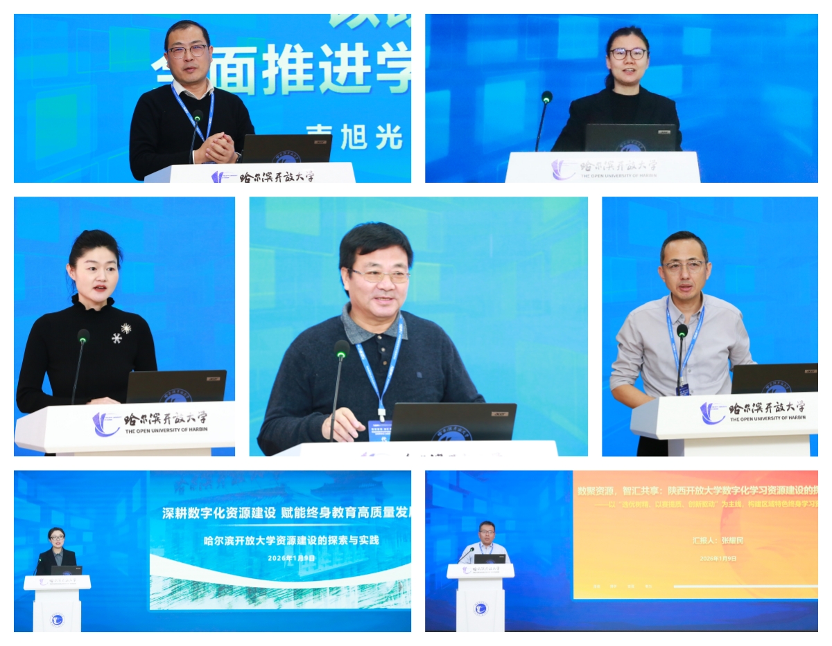 中国教育技术协会开放与远程教育专业委员会主任、国家开放大学原副校长杨孝堂,以《教育教学与资源建设》为题,厘清了远程教育教学设计系统框架,深入剖析了资源建设的分类、开发原则等关键要素;国家开放大学学习资源部副部长董立超围绕《学习资源高质量发展的思路与重点》,提出“数智赋能、供需匹配、共建共享”核心发展思路,明确六大资源高质量建设方向;国家开放大学数字化学习资源中心主任张暾发布《网络教育数字化学习资源中心2025年工作报告》,总结全年工作成果,指出全国已建成264家分中心,资源共建共享生态圈逐步完善,同时提出未来发展举措;中心崔沁则以《数智赋能:基于岗位胜任力的学习资源建设》为题,围绕人才培养模式改革、资源建设构想等内容展开论述。哈尔滨、重庆、陕西三所开放大学作为优秀分中心代表,分享了各具特色的实践经验。51所办学单位分别荣获数字化服务卓越单位 、团队协作示范单位、资源共享模范单位等称号。哈尔滨开放大学被评为数字化服务卓越单位。