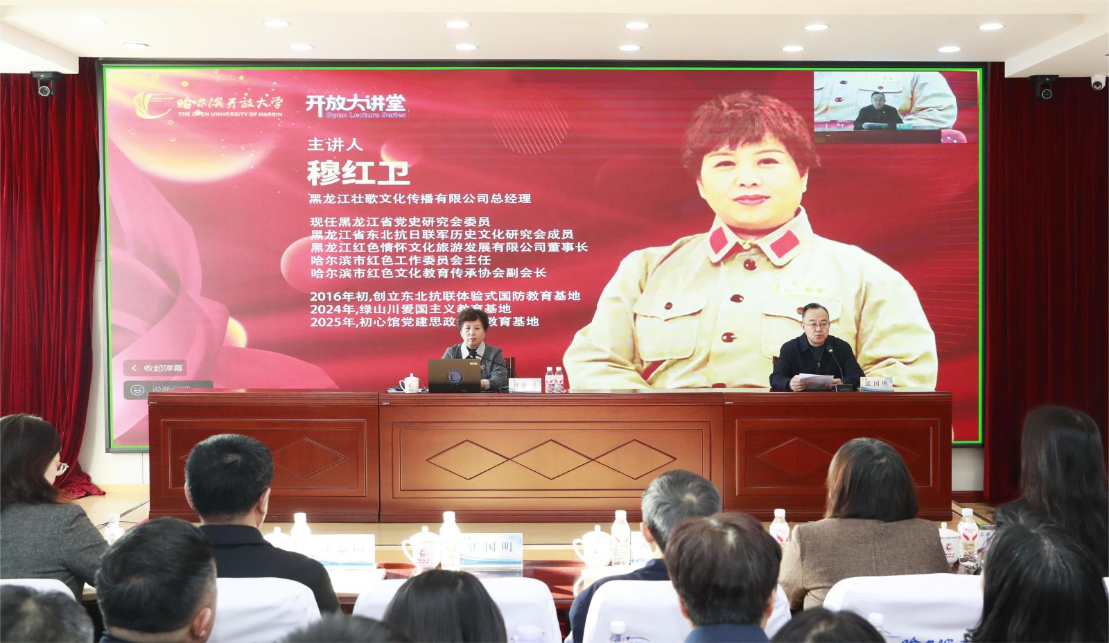 首期讲座以“弘扬伟大东北抗联精神”为主题,特邀黑龙江壮歌文化传播有限公司总经理、黑龙江省党史研究会委员、东北抗日联军历史文化研究会成员穆红卫担任主讲。穆红卫长期致力于东北抗联历史研究与红色文化传播,是多个红色教育阵地的创立者,兼具深厚的理论功底与丰富的实践经验。